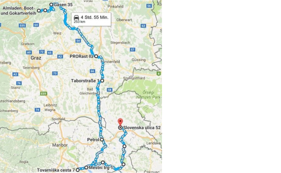 Links zur Google-Maps-Routenführung Tag 1