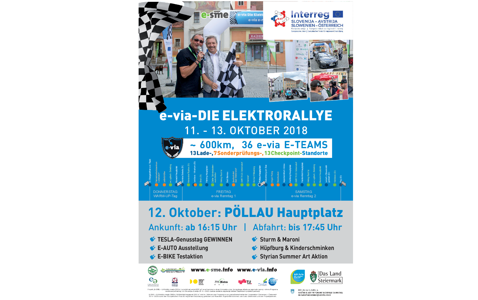 So darf das Pöllauer Tal mit seiner Infrastruktur nun schon zum wiederholten Male Teil der e-via – DIE ELEKTRORALLYE sein.